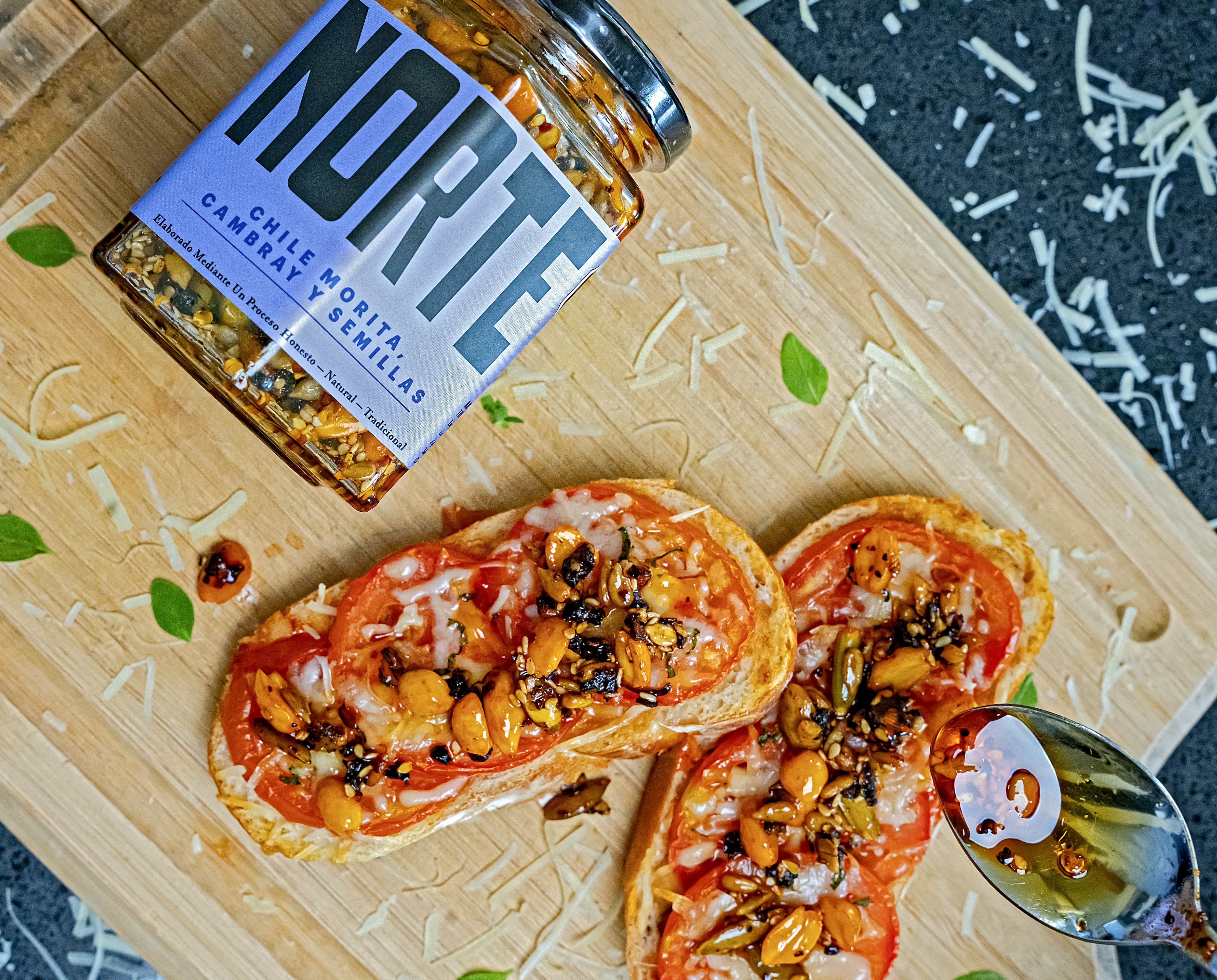 Una sabrosa combinación de semillas envueltas en aceite de oliva con un toque de chile morita y cambray.