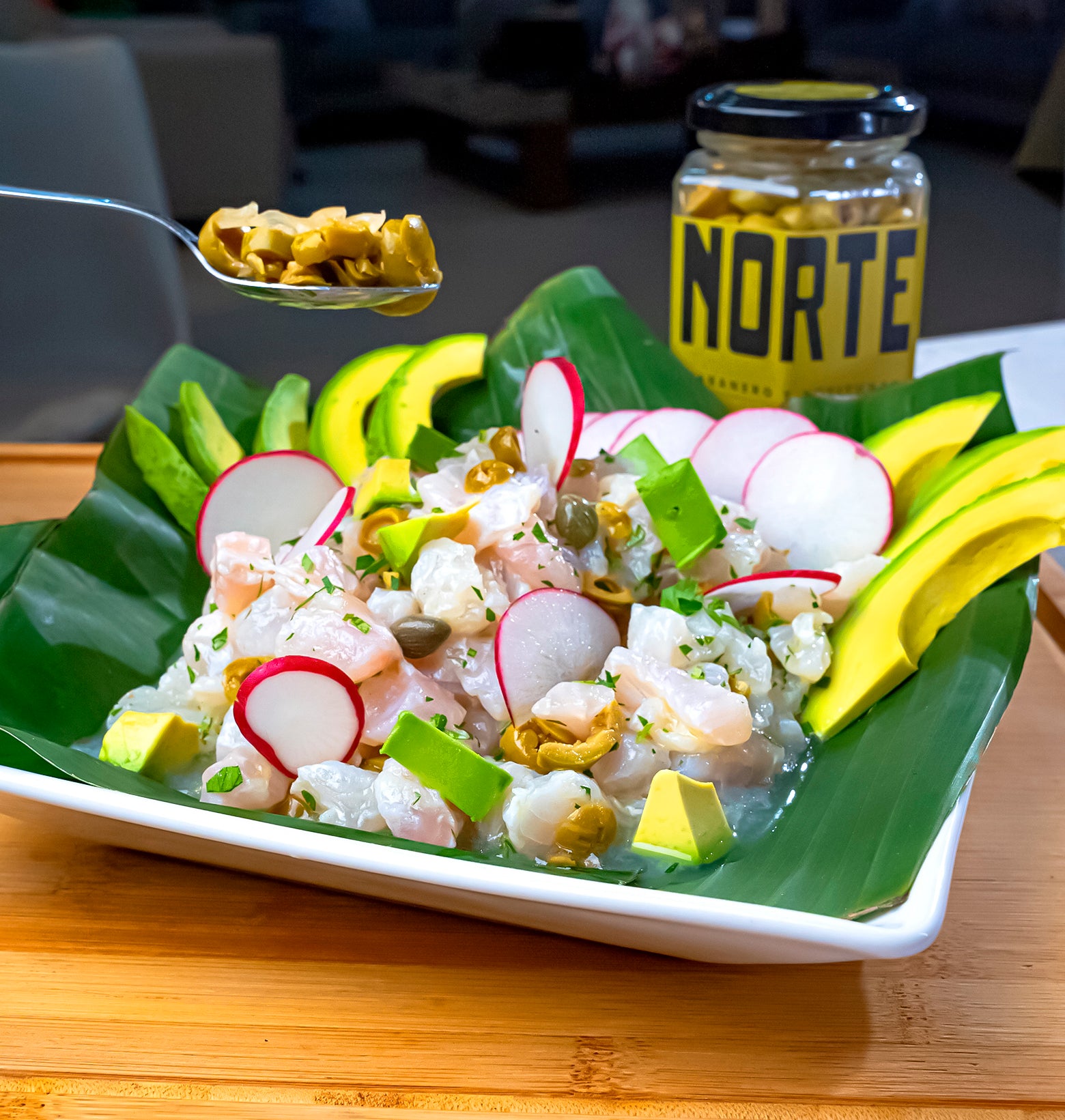 Chile Habanero, cebolla morada, aceitunas verde en rodajas, limón y especias, todo curtido en vinagre de manzana.